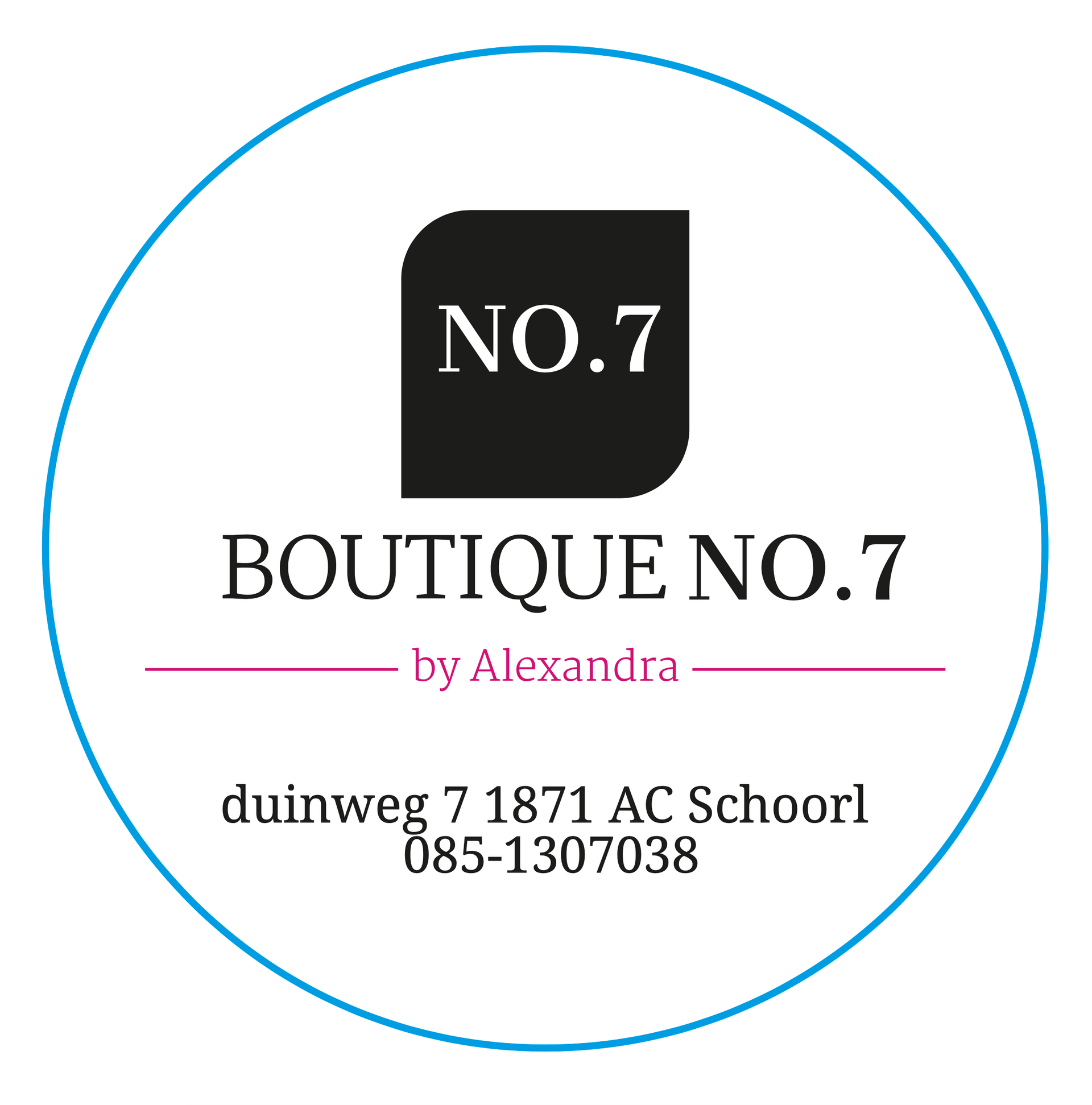 Sinds 1 februari 2020 heeft Alexandra haar eigen winkel: Boutique No.7 aan de Duinweg 7 in Schoorl. Een uniek concept in het moderne winkellandschap: veel luxe stijlen voor een mooie prijs en een professioneel en eerlijk advies. De winkel is open van woensdag t/m zondag van 12.00 tot 17.00 uur.